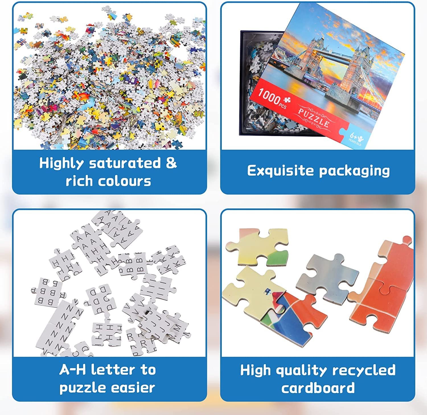 Including 1000 small pieces.Featuring a finished size of 30″ * 20″ with a precision cut that ensures a tight, interlocking puzzle.